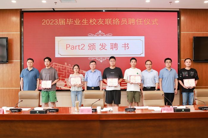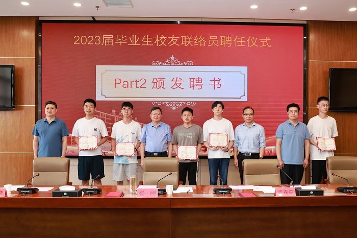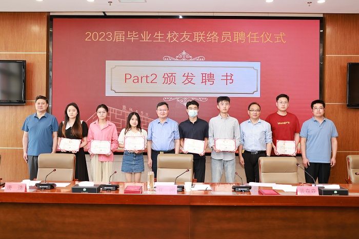 经各二级学院推荐,校友会办公室审核,来自各学院的 181名同学受聘为盐城工学院2023届校友联络员。校长办公室副主任张炜炜宣读了《关于聘任2023届毕业生校友联络员的决定》。出席活动的相关领导、老师为校友联络员代表颁发聘书。