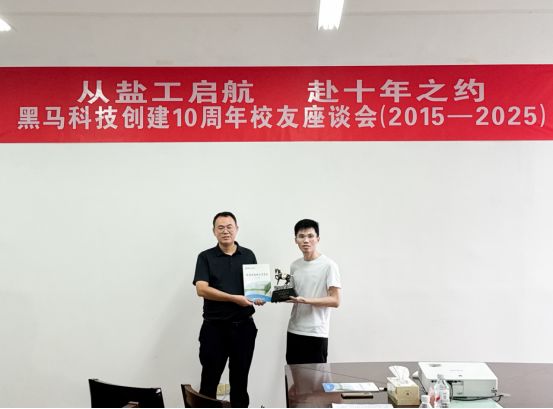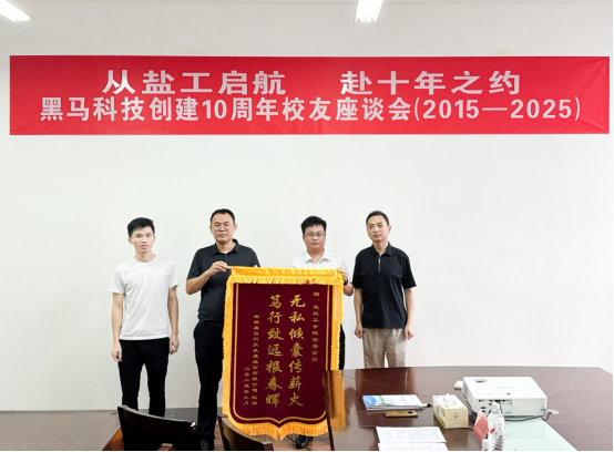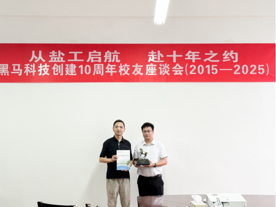 李争光、陈阳分别向校友卓伟文、吴荣繁赠送“黑马”模型和《黑马科技校友奖学金项目集锦》。意指“黑马科技”未来10年马不停蹄、一马当先、马到成功。《项目集锦》汇编了校友奖学金捐赠、3次评审颁奖材料和校友创业的历程,是开展大学生创业教育、感恩教育、学风建设的生动教材。校友为感谢母校的教育培养和对黑马科技公司发展的支持与帮助,也向学院赠送一面锦旗“无私倾囊传薪火,笃行致远报春晖”。